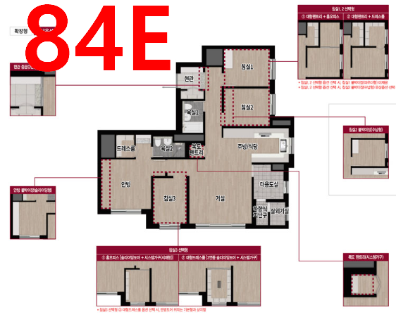 - 전용면적 84.7470㎡ (E형): 561,300,000원 ~ 621,100,000원